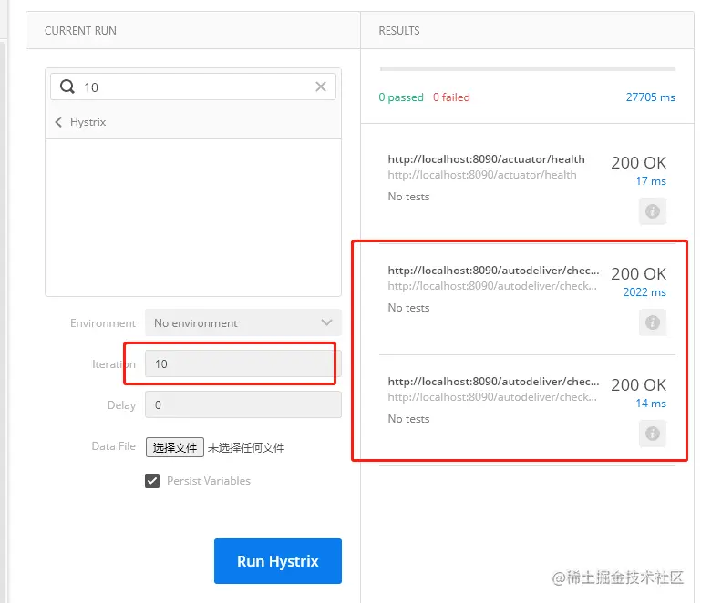 这里使用的是超时配置项: execution.isolation.thread.timeoutInMilliseconds ,意思是,调用这个接口的时候,如果接口处理的时间大于2秒后,则会报错