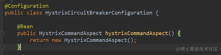 我们看下这个类,发现注入了切面, hystix就是靠切面干活的