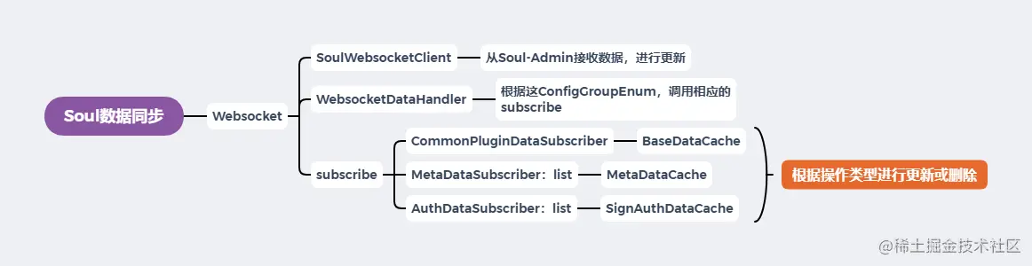 - 1.SoulWebsocketClient :从Soul-Admin接收数据,进行更新,里面有数据类型、操作类型还有具体信息
