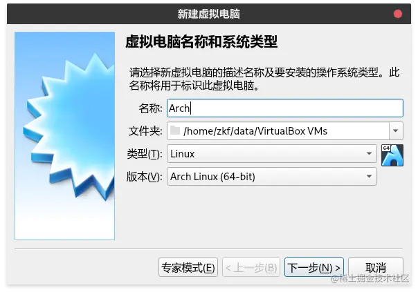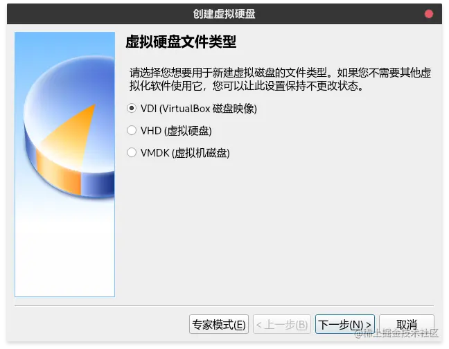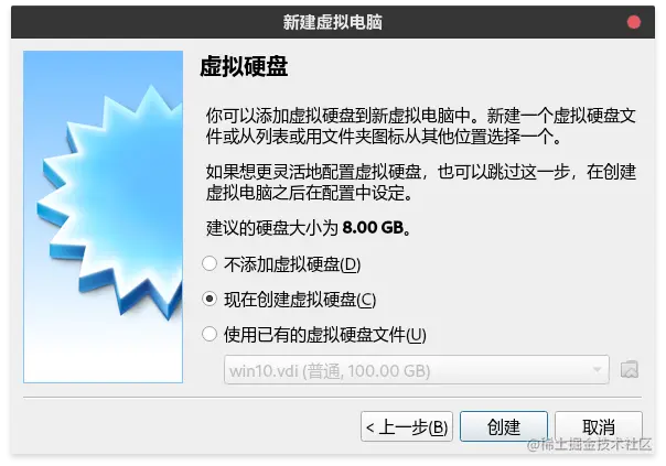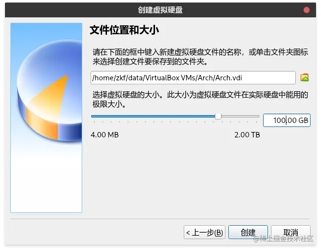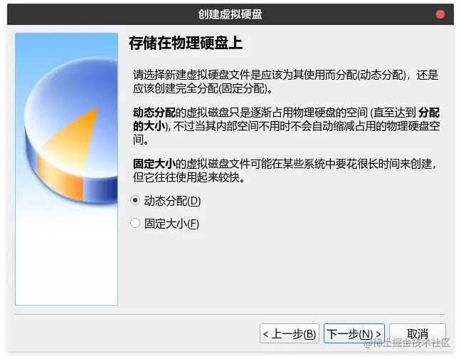 设置使用动态分配的方式。即,设置虚拟硬盘100G,最后根据实际的系统占用空间,占用物理硬盘空间。