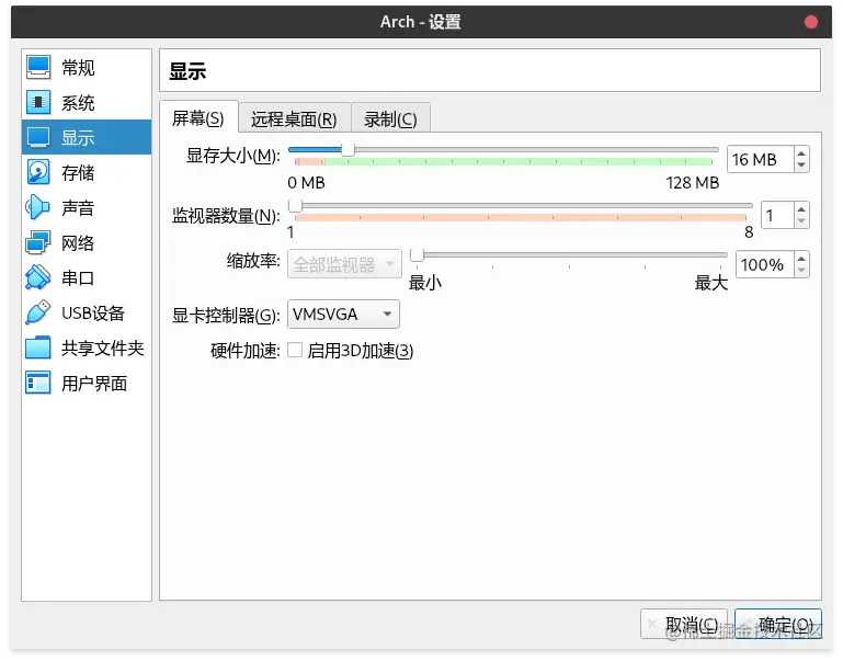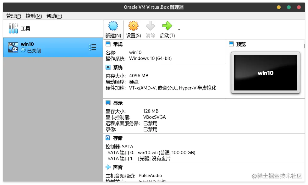 确认虚拟硬盘文件位置和大小后,创建虚拟电脑。再次打开设置。