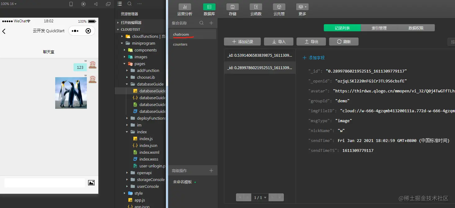- 打开 pages/databaseGuide/databaseGuide.js 文件,找到对应的数据库操作方法