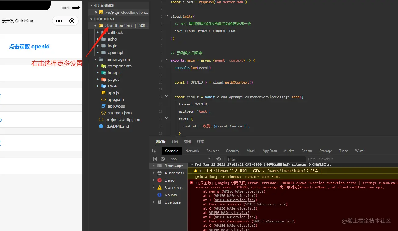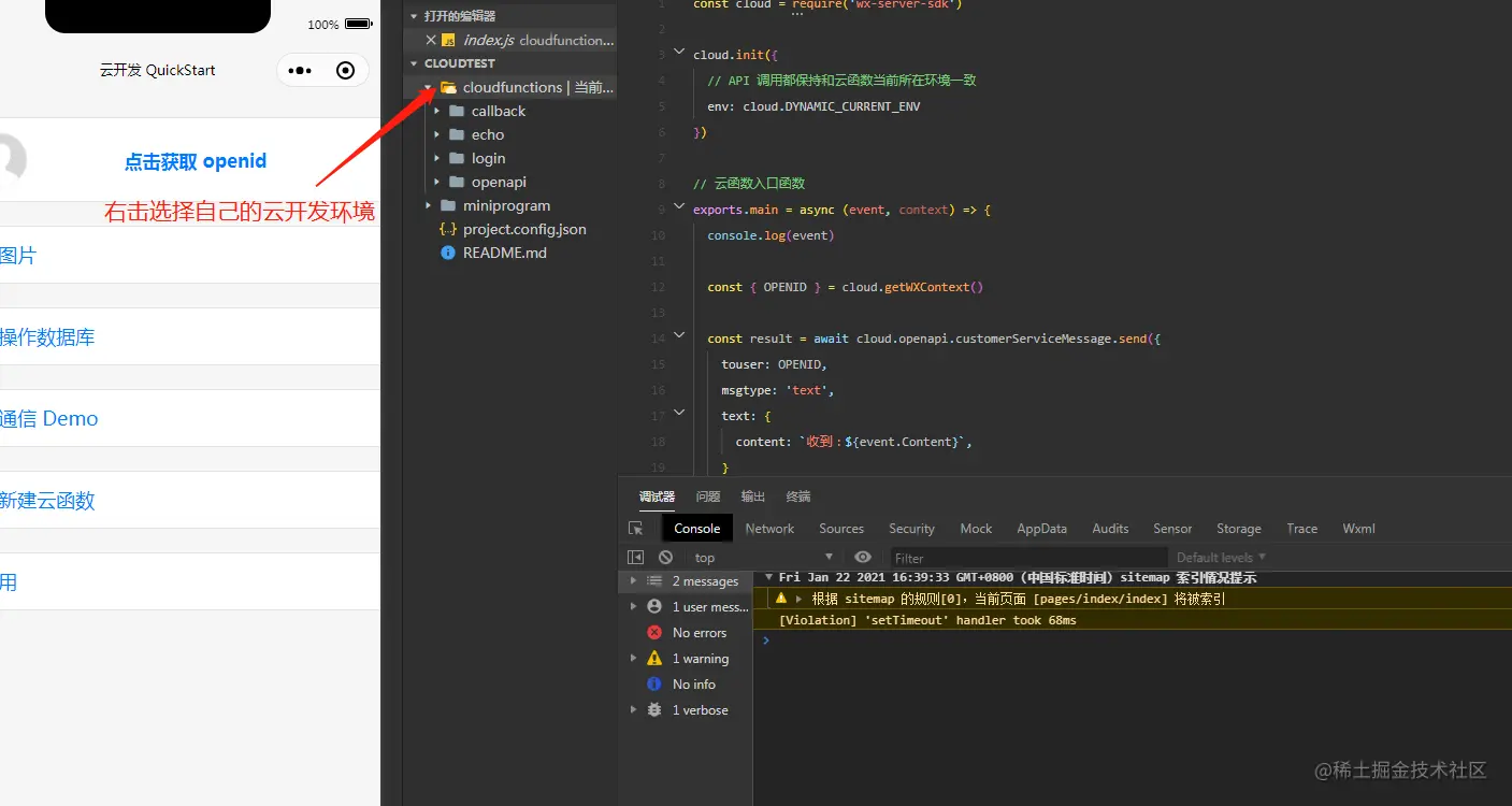 - 开启云开发要不然会报错
