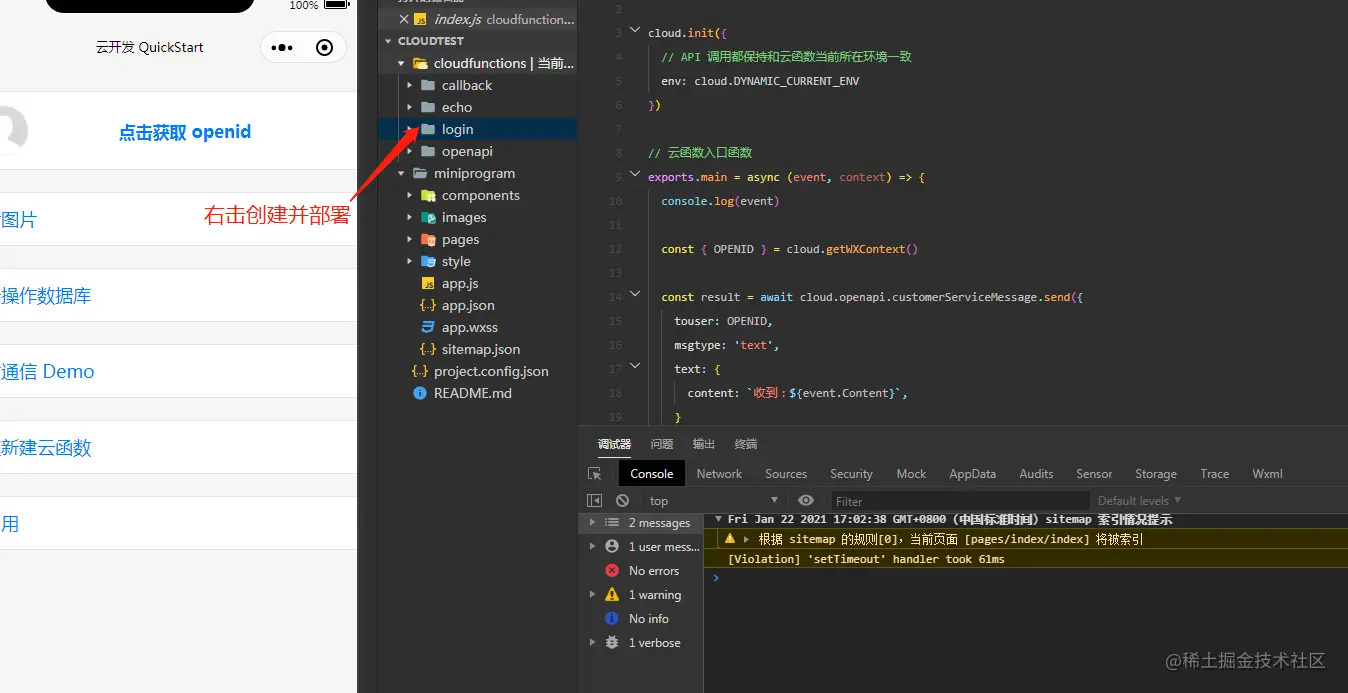 - 右键点击云函数,把他部署到云服务中。