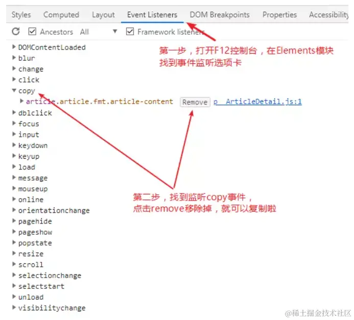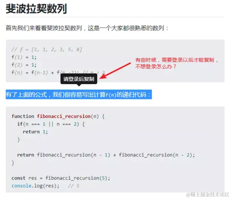 不登录就可以复制文章?-移除监听禁止copy事件即可 水冗水孚 2021-01-23 481 阅读1分钟 问题 关于如何解除网页不让复制的方式有很多,本篇文章也是其中一种方式。以思否为例,思否有时候不登录,不让复制内容 问题描述图示 解决方案图示 最终效果图示 回顾入行两年多,好像只会增删改查复制粘贴面对百度编程...,多记录把。以后也顺带把文章发在掘金上,比CSDN简约风好,喷子也没CSDN那么多 ^_^ 。当然最好的还是博客园哦 ^_^ 还是得多记笔记发文章记录啊,将来能够复用代码啊 ^_^
