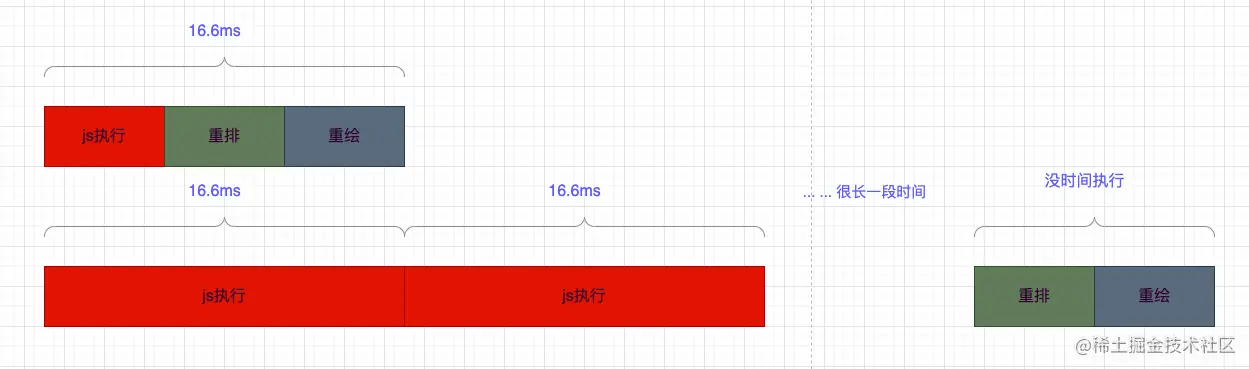 那么react17怎么实现异步可中断的更新呢,我们知道一般浏览器的fps是60Hz,也就是每16.6ms会刷新一次,而js执行线程和GUI也就是浏览器的绘制是互斥的,因为js可以操作dom,影响最后呈现的结果,所以如果js执行的时间过长,会导致浏览器没时间绘制dom,造成卡顿。react17会在每一帧分配一个时间(时间片)给js执行,如果在这个时间内js还没执行完,那就要暂停它的执行,等下一帧继续执行,把执行权交回给浏览器去绘制。