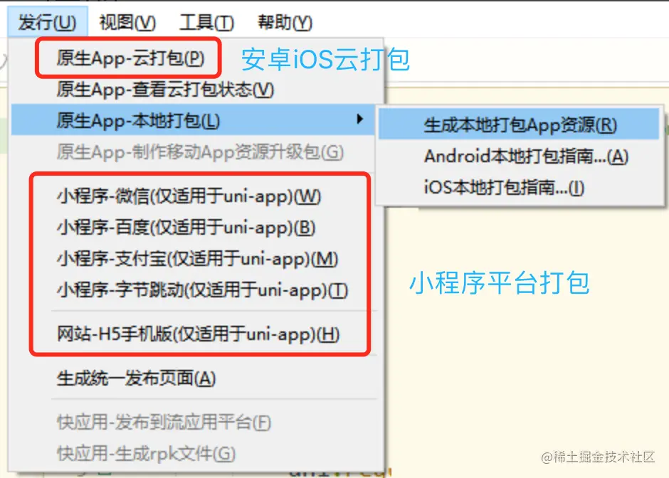 - 对于前端开发人员比较友好,vue作为主流前端框架大多数人都掌握,只需要少量原生知识就能够开发跨平台的应用