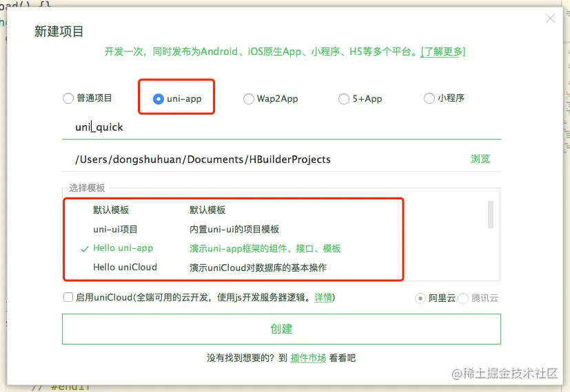 对于老的uni-app项目,也可以对项目点右键,菜单中选择“创建uniCloud云开发环境”