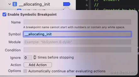 通过对sil文件的分析,我们知道了swift对象在初始化的时候,是通过__allocating_init方法创建的,我们通过Xcode来探索__allocating_init。