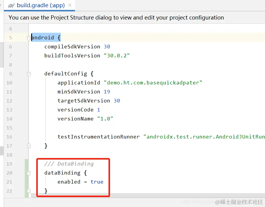 - 使用 DataBindingUtil.setContentView(Activity,加载布局id) 加载布局