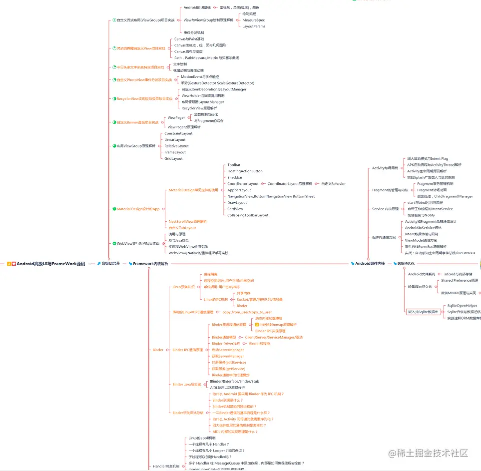 **总结:**相信读者们看到此处,已经对架构师的成长路线以及学习方法都有了不小的收获,Android架构师之路虽很漫长,但还是需要你的坚持不懈的努力与学习,一起共勉吧!从业Android开发多年来,我所接触的Android开发者,百分之九十五以上都遇到了以下几点致命弱点!