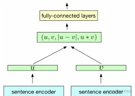 我们可以看到,模型输入层是待匹配的sentence pair,经过同一个编码器转换后,得到其embedding特征编码向量。进一步,将两个embedding向量进行交互组合,最后送入全连接层得到分类预测结果。其实抽象出来,在文本匹配任务中,Siamese Network可以拆解为,将输入转换到同一个特征空间,然后进行向量交互匹配(类似于余弦相似度),最后进行特征变换使得模型能够学习到针对不同任务的不同参数。