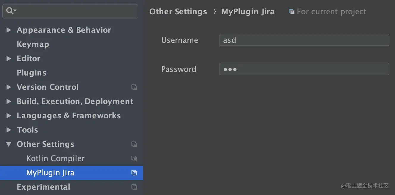 本文的目的是为我们的插件创建一个 设置页面,这将是我们迈向将JIRA搬运过来的第一步。我们的设置页面上只会有一个用户名和密码字段,我们的插件将使用该用户名和密码字段与Jira API进行交互。我们还希望能够为 每个项目 分别配不同的设置,从而允许用户根据项目使用不同的Jira帐户(这可能很有用)。