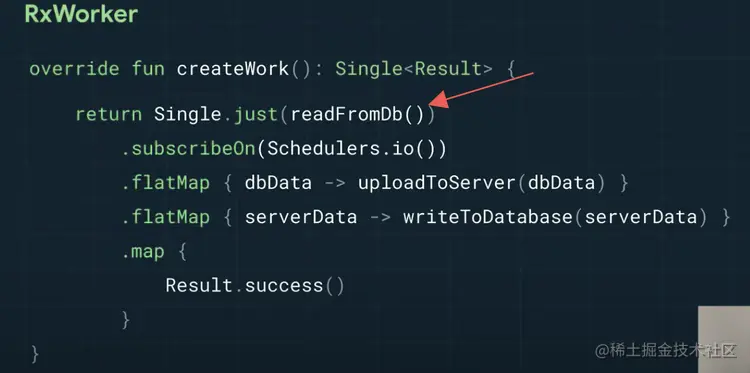 如上,readFromDb() 放在just中显然是不合适的。just()在当前线程立即执行,因此不受subscribeOn影响,应该修改如下: