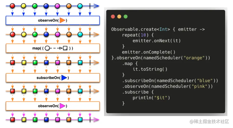 通过Scheduler让操作符跑在指定线程,从而实现多线程调度