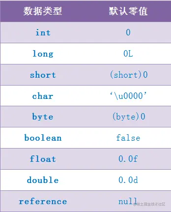 初始值为0、false、null等