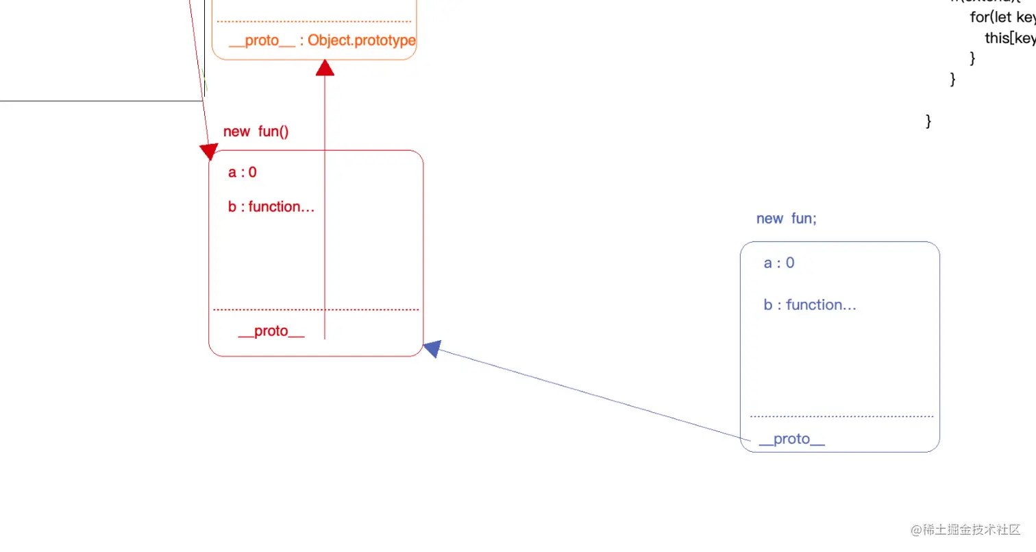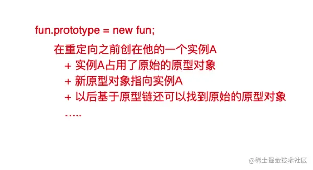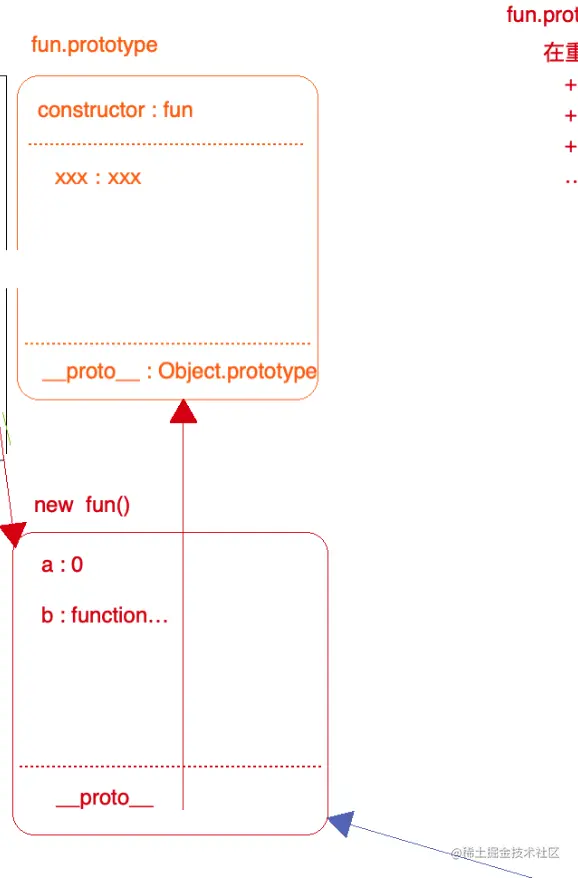 (1)先执行等号右边 new fun; 创建完实例之后,实例的__proto__属性指向之前的fun.prototype所对应的堆内存,所以这个内存并没有被释放,有人占用;