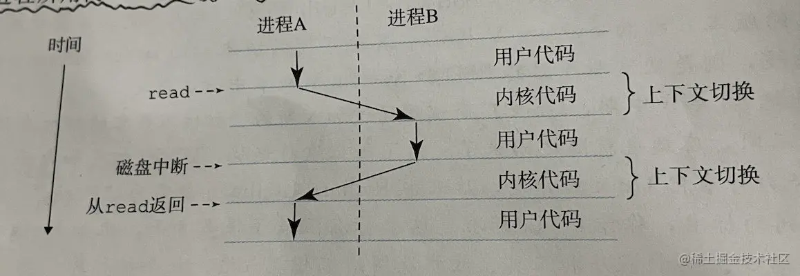 上图,从一个进程到另一个进程的转换是由操作系统内核管理的,内核是操作系统代码常驻主内存的部分。当应用程序需要操作系统的某些操作时,比如 读写文件,它就执行一条特殊的系统调用(system call)指令,将控制权专递给内核。然后内核执行被请求的操作并返回应用程序。注意,内核不是一个独立的进程。相反,它是系统管理全部进程所用代码和数据结构的集合。