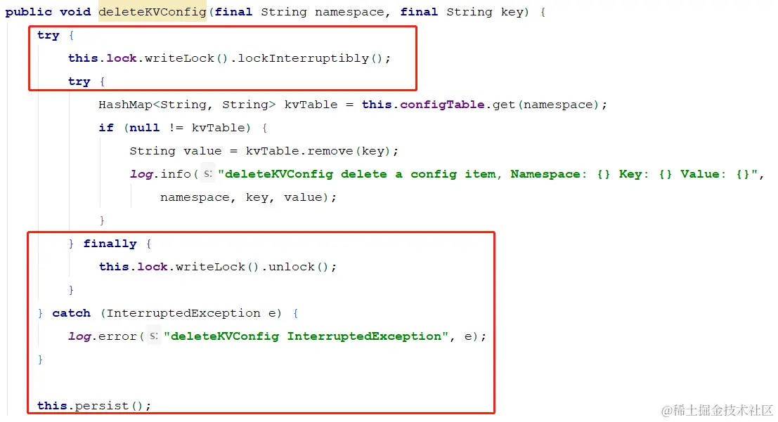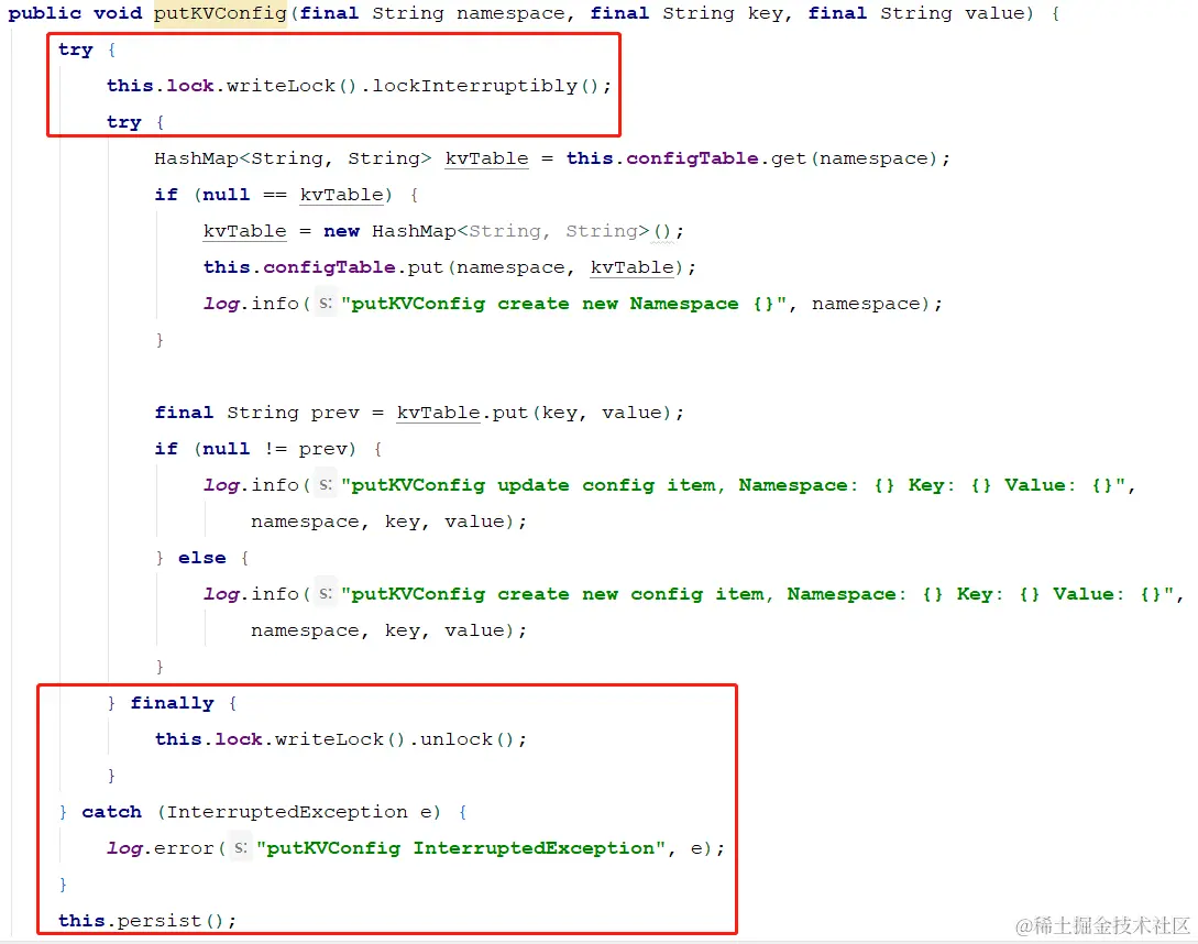 今天看到RocketMQ源码的KVConfigManager类,其中的部分代码有重复,如下:
