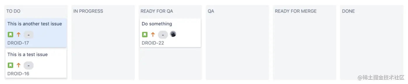 这就是我的面板页在Jira中展示出来的样子,issue只能向前推进,并且只能从一列移至下一列,您不能跳过流程中的任何一列。