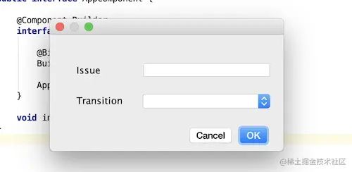 剩下唯一要做的事情就是为Jira的issue获取下一个Transition,并在用户按下OK按钮时移动issue。为此,我们将使用Retrofit和RxJava。