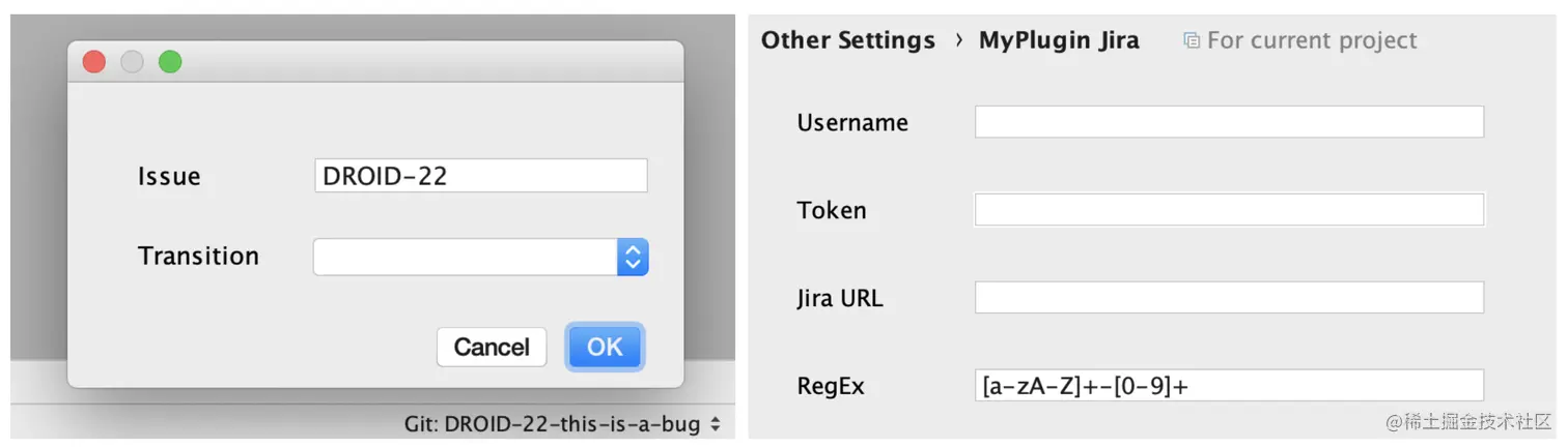 今天,我们将Jira集成到我们的插件中,我们要做的是能够在Android Studio中将Jira Scrum板上的issue移至下一栏。因为Jira的issue ID将基于我们当前的git分支,所以我们的插件将从我们当前的分支中解析issue ID,而不是强迫用户手动输入或从其他位置选择issue ID。