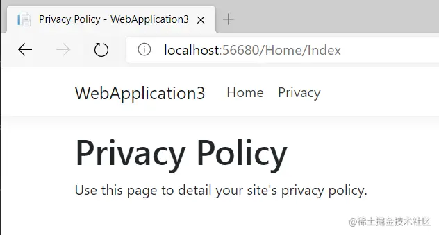 从图中可以看出,url 请求的是 Home/Index,显示的是 Home/Privacy 内容,如果你有更加复杂的业务需求,可以使用 正则表达式 来定义规则,如下代码所示: