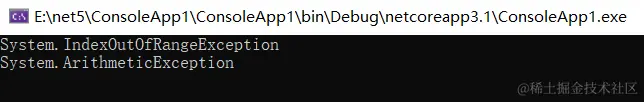 上面的代码片段表示:IndexOutOfRangeException 会被处理, InvalidOperationException 会被忽略。