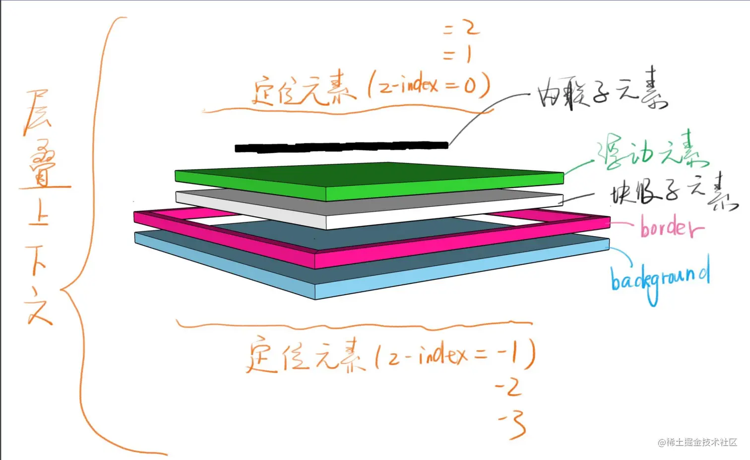 首先讲一下CSS垂直方向的分层。以一个div的分层为例: