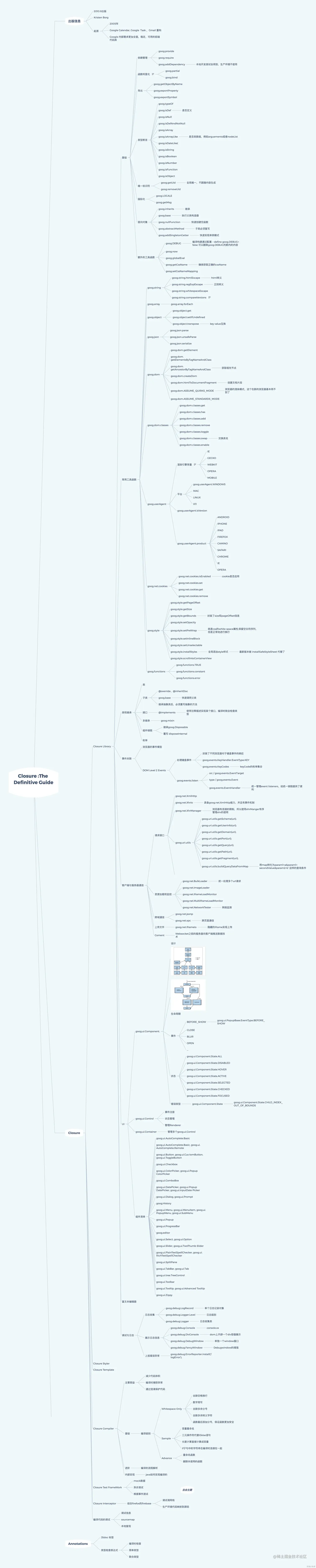 本文针对 《Closure The Definitive Guide 》一书,以思维导图的形式进行读书笔记总结。阅读 Closure Library 源码有利于提高 JavaScript 应用水平,以及更加全面掌握一个良好的前端框架的必备要素。