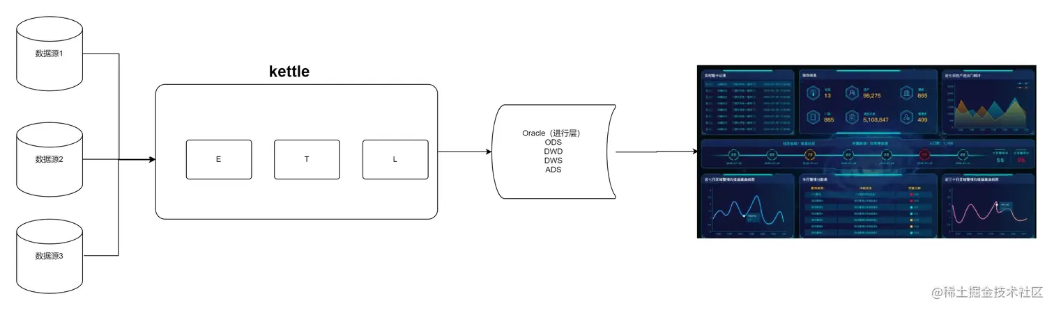 根据开会和各位领导的决定使用oracle来做数仓,分别在oracle中构构建四层分别为 ods、dwd、dws、ads这里我就不介绍数仓分层概念了最后的整体架构如下: