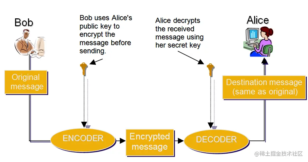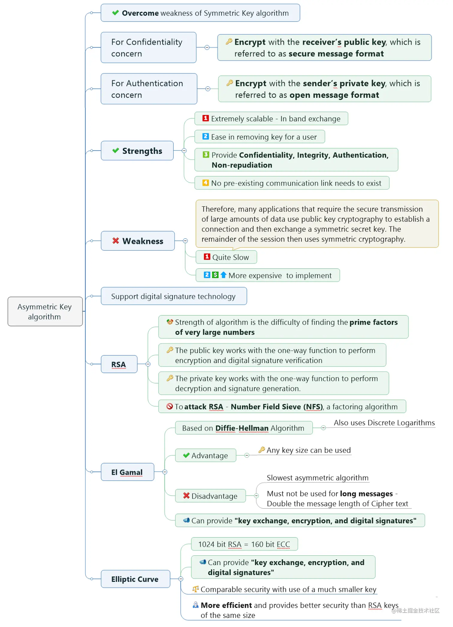 实现算法有:RSA 算法、椭圆曲线加密算法等