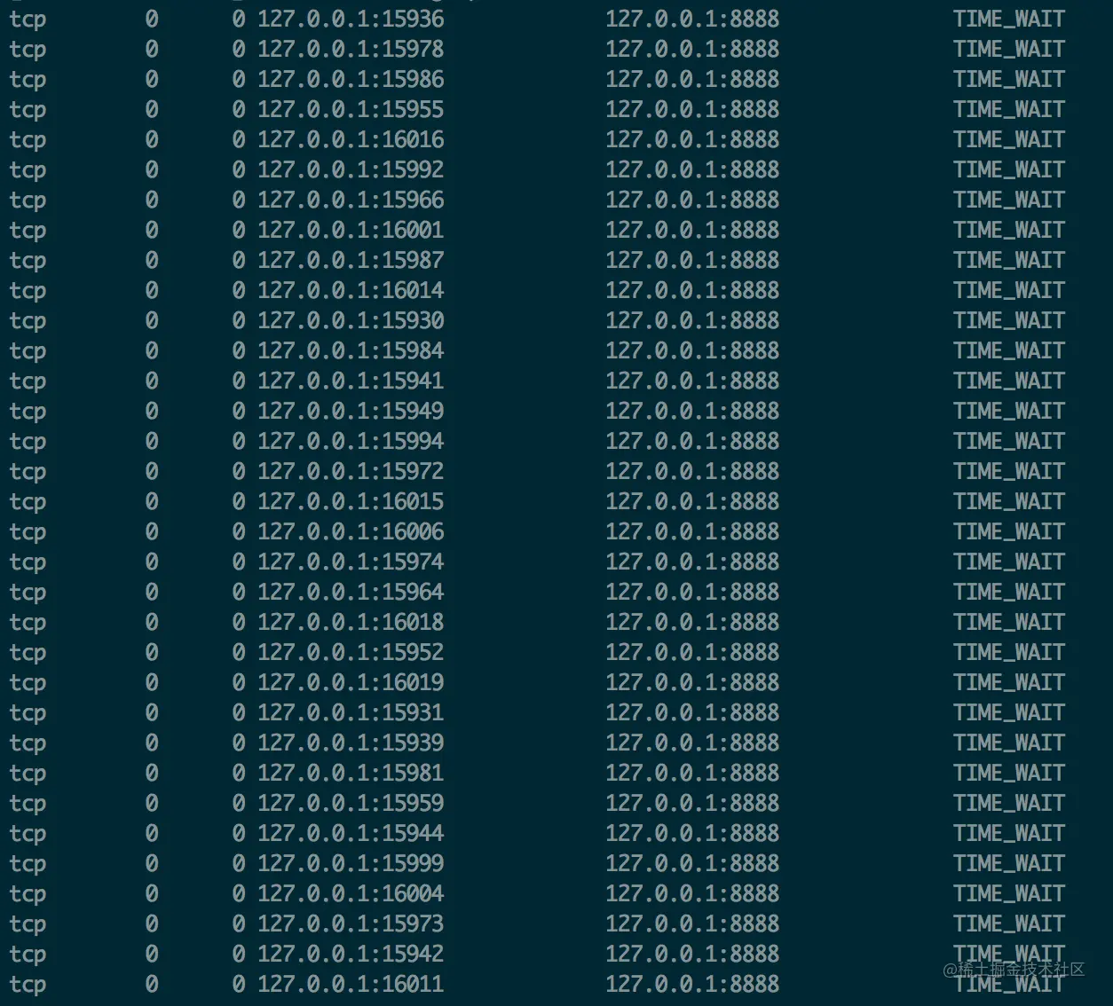 模拟高并发的场景,会出现批量的 TIME_WAIT 的 TCP 连接: