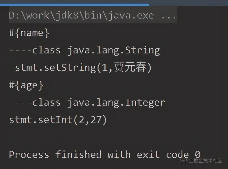 这个实现的是insert的,返回值类型固定,如果是select查询语句,涉及到返回的结果封装成对象。思路也是通过反射,和参数转换步骤差不多,就不贴代码了。