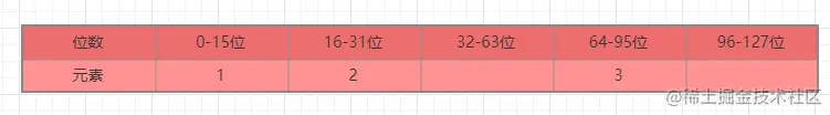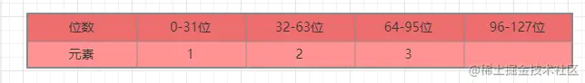 4个元素,原来的数组排在第3,所以需要将升级后的3移动到64-95位。