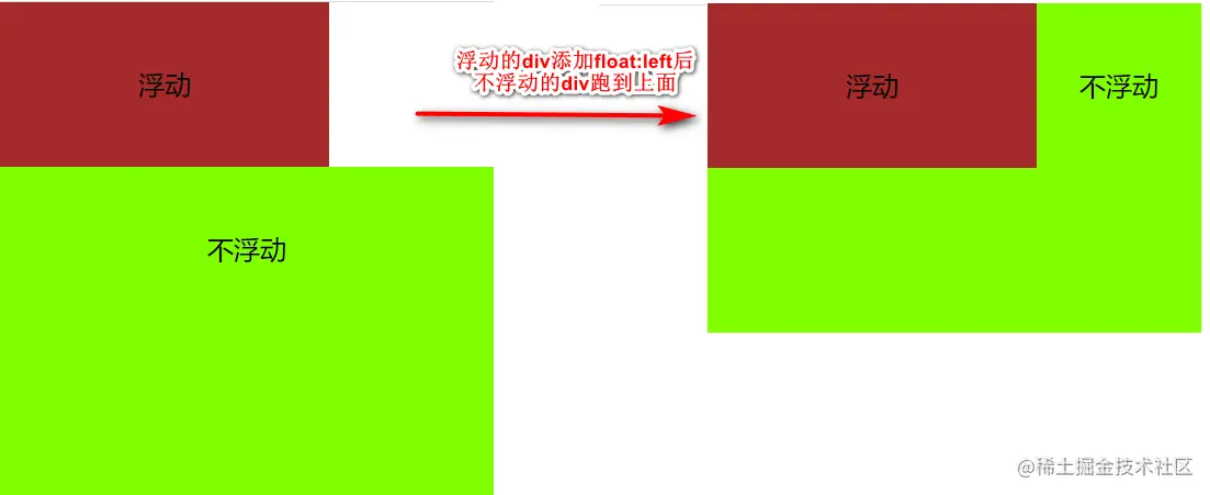 一个盒子里面有多个盒子,若其中一个盒子浮动了,理论上其余的盒子也要跟着浮动,浮动的盒子之后影响浮动盒子后面的标准流,不会影响前面的