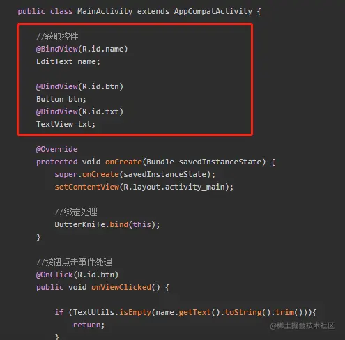 - 这是使用butterknife的view定义和初始化