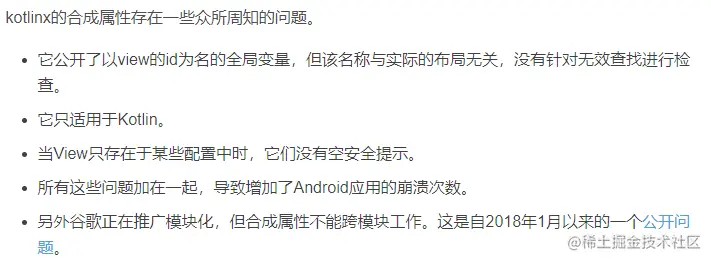 总结:引入他可能导致的问题,已经让开发者忘记了他的优点,个人Kotlin小项目也可以使用,但是相比View binding几乎没有啥优点。