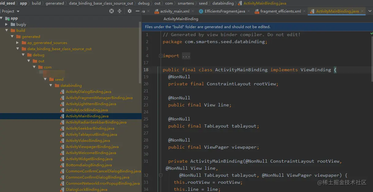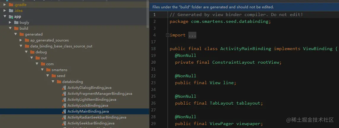 - viewbinding采用预编译的方式自动生成了binding代码