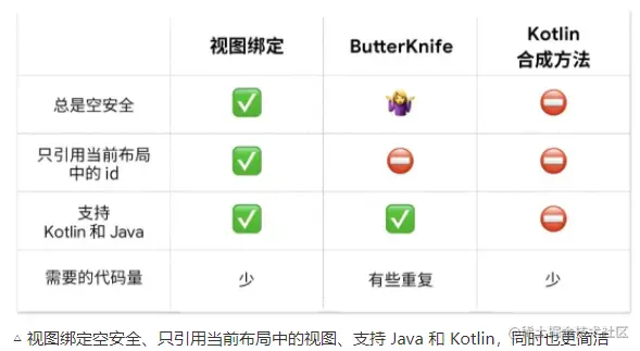全文总结对比,关于视图绑定目前相对比较好的方式是viewbinding, 如果你的项目深入使用了jetpack,想用databinding那么就不需要使用viewbinding了,详细请看下面具体章节: