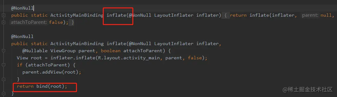 - 核心是bind函数,bind函数执行过程中return了我们的ActivityMainBinding对象,同时你是否注意到了,它还做了空安全检查😘