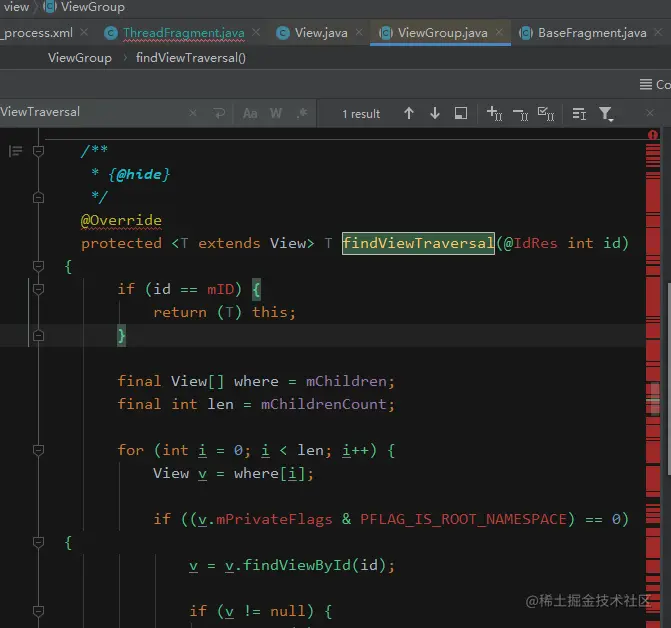 - 需要注意下布局层次的控制,页面绘制的核心是循环遍历id去绘制, 因此布局时要求布局层次清晰的同时尽量&&不要指数级的增加布局层次,遍历核心代码见下图: