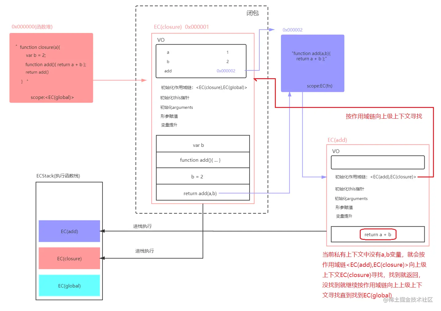 执行上下文,将内部的变量存储在variable object上,同时上下文的形成也保护了内部变量不被外界所影响,所以我们可以说这是一个闭包
