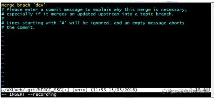 - 存储临时改动:请输入提交消息来解释为什么这种合并是必要的