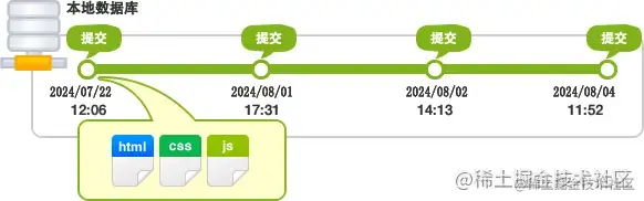 | 被git管理的项目目录 | 执行 git add .临时保存文件 | 执行git commit -m '提交说明' 保存到本地 |