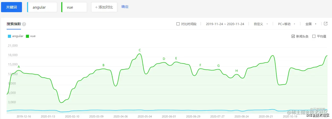易用性,决定了你的团队好不好招人,这一点对小公司和不在一线城市的公司来说非常重要。我在天津(二线城市)工作快 4 年了,招前端的基本上每个公司都要求会 Vue,而要求会 Angular 的基本没有。