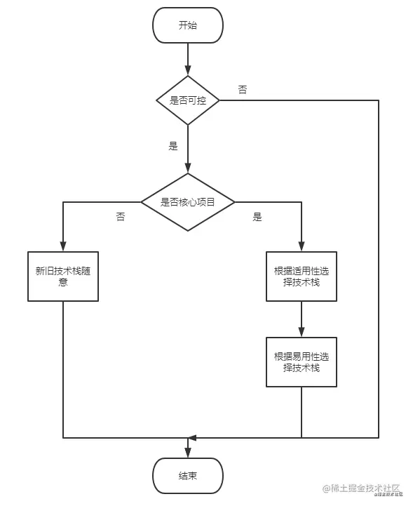 - 核心项目必须使用成熟稳定、可靠的技术栈,边缘小项目可以使用新技术给团队成员练手或者踩坑。