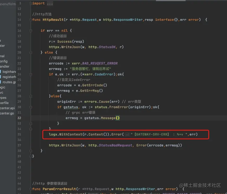 然后在说我们的 gateway log,如果眼神好的用户,在上面的 httpresult.go 中已经看到了 log 的身影: