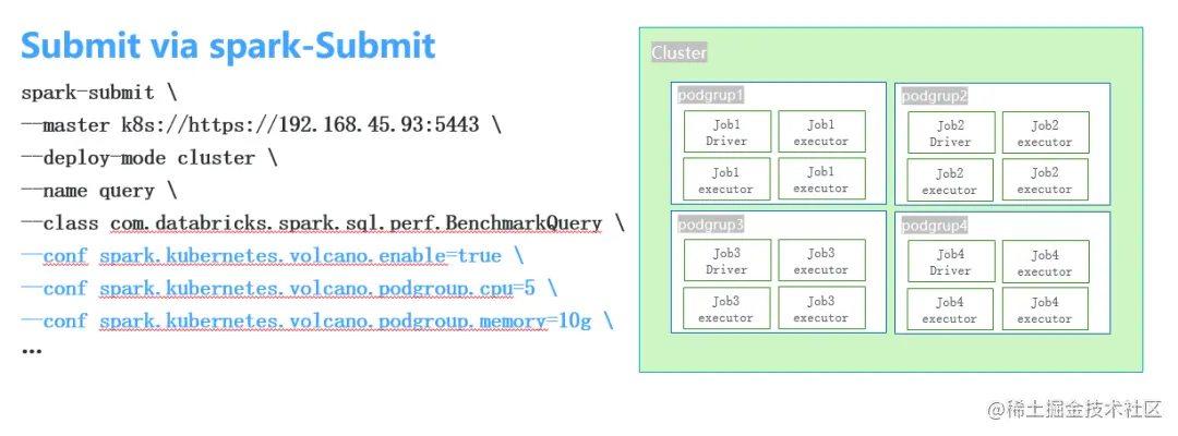 Volcano对于上面提到两种工作方式都进行了集成和支持。这个链接是我们维护的 Spark开源代码仓库: