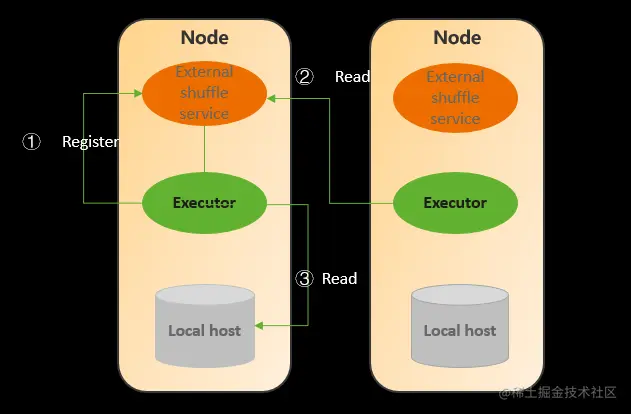 2)Shuffle本地写Shuffle数据,本地、远端读shuffle数据